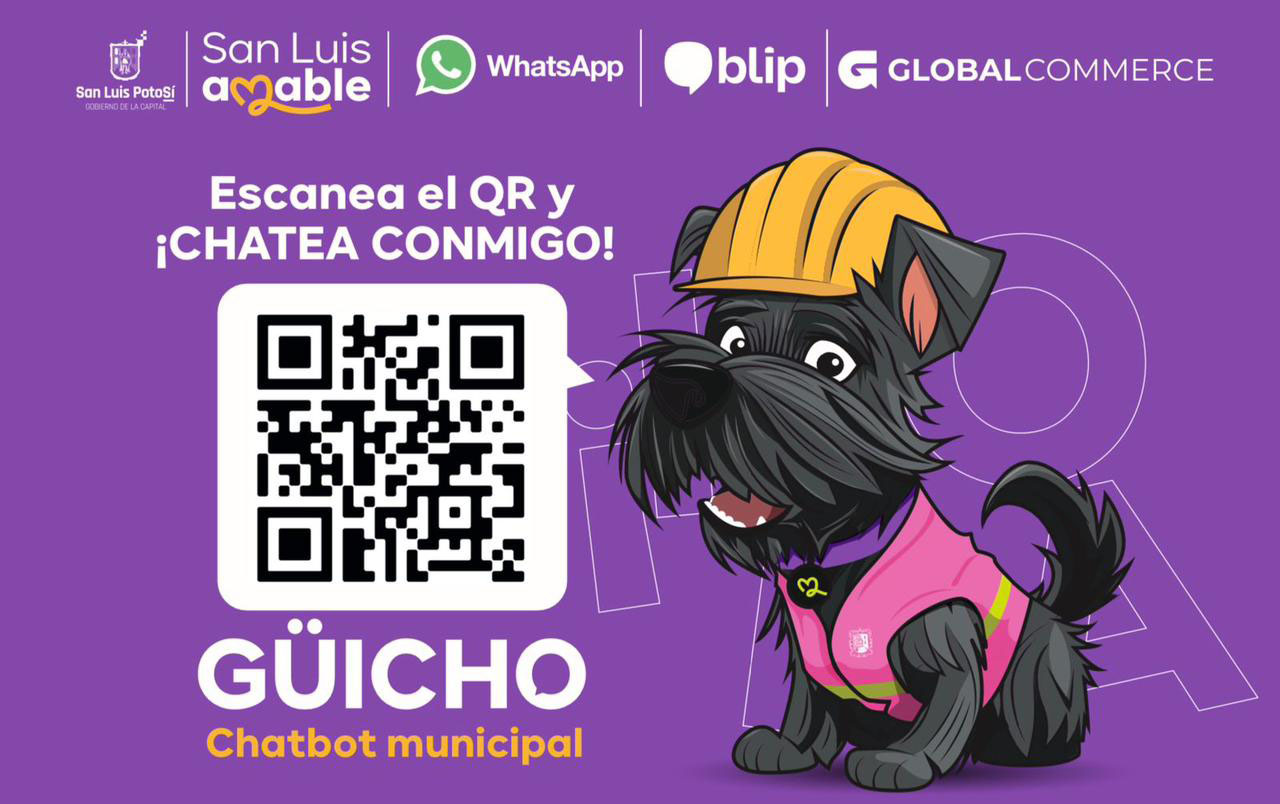 - La Capital de San Luis Potosí da un paso hacia la modernización de sus servicios públicos; “Güicho», la nueva mascota permitirá a los ciudadanos reportar problemas de manera fácil y directa. En una primera etapa atenderá reportes de bacheo y alumbrado.