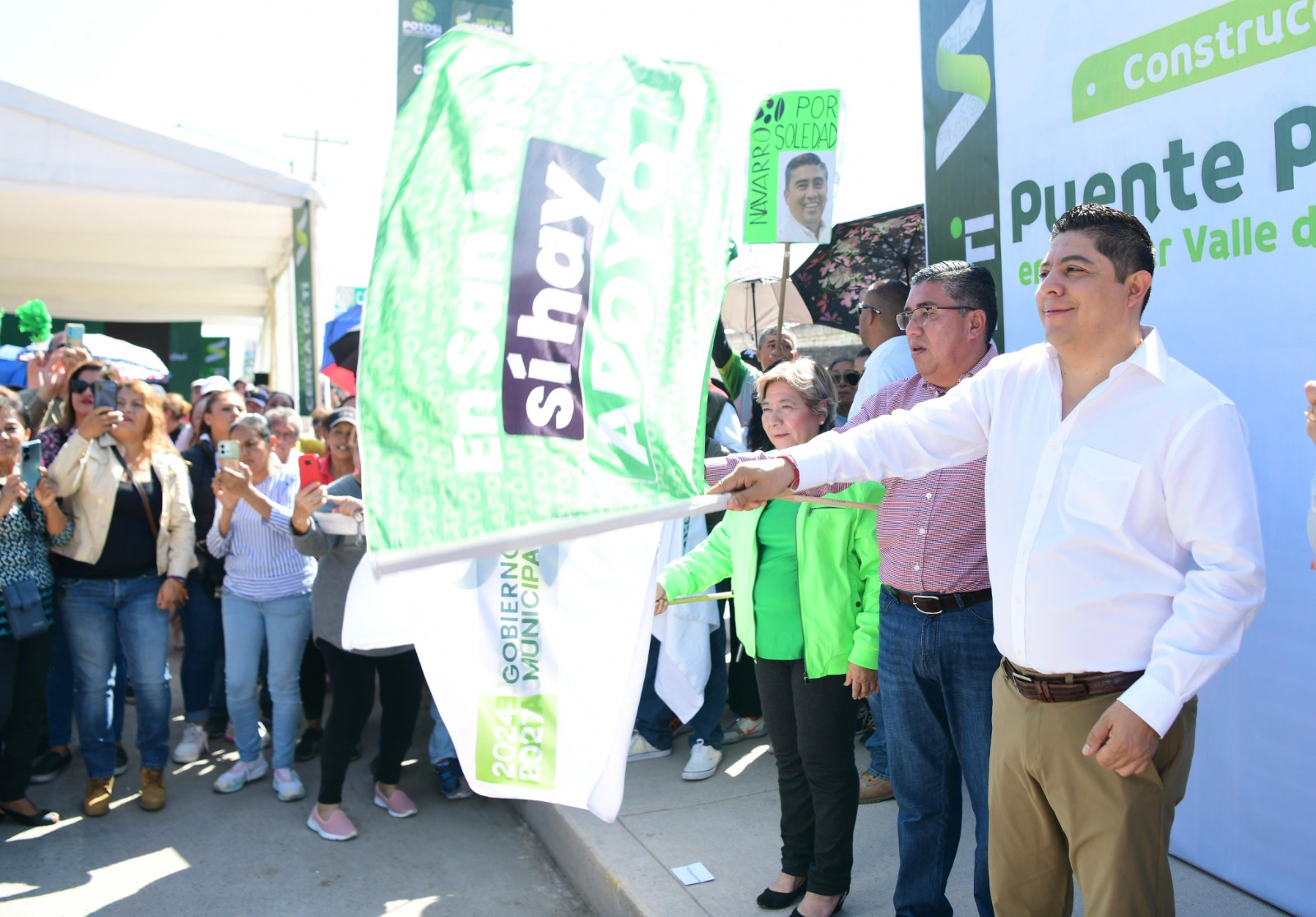 Recordó que en tan solo un año, su Gobierno ha invertido más de 700 millones de pesos en infraestructura para Soledad, como el puente atirantado de Quintas de la Hacienda, además del colector pluvial que próximamente entregará, con inversión de 300 millones de pesos, y prometió que en unos meses iniciará la construcción del parque Tangamanga III.