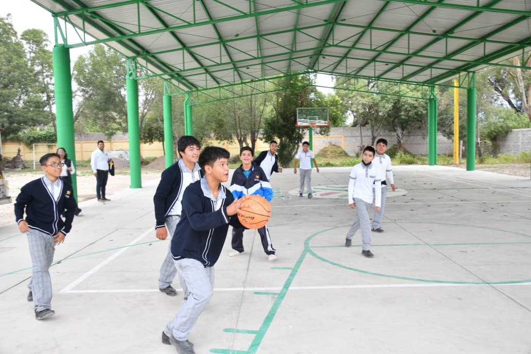 La obra entregada consiste en un techado de 15 por 27 metros en la cancha escolar, en beneficio directo de 200 alumnos y alumnas, además, el Alcalde anunció que pronto se iniciarán los trabajos de construcción de una cancha de fútbol rápido de pasto sintético, reafirmando así su compromiso de transformar la educación y el deporte en Soledad de Graciano Sánchez.