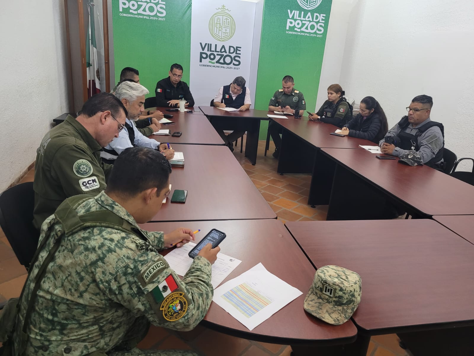 En este encuentro participaron autoridades de distintas instancias, entre ellas la Secretaría de la Defensa Nacional (SEDENA), Guardia Civil Estatal, Secretaría de Seguridad y Protección Ciudadana Estatal (SSPC), Secretaría de Gobernación, Guardia Civil de Soledad de Graciano Sánchez, Secretaría de Bienestar y Guardia Civil de Villa de Pozos.