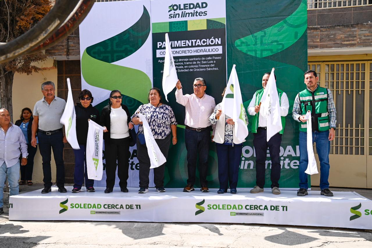 - El Alcalde soledense dio arranque a la pavimentación integral de la calle Paseo de Los Fresnos, obra que beneficiará a más de 4 mil habitantes y forma parte del compromiso de transformar por completo la colonia con apoyo del Gobierno Estatal.