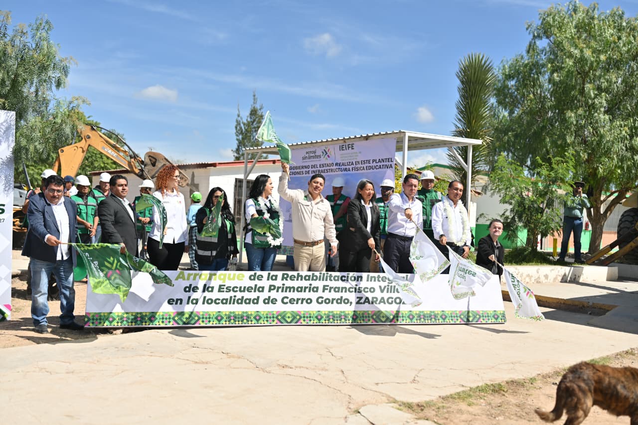 Durante una intensa gira por el municipio de Zaragoza, en medio de un ambiente de fiesta y agradecimiento de las y habitantes, el Jefe de Gobierno Estatal, en Cerro Gordo, inició las obras de la escuela primaria Francisco Villa que quedará como nueva y anunció la construcción de la preparatoria, con lo que se garantizarán espacios dignos para la niñez y juventud potosina y posteriormente inauguró la pavimentación de las calles Chihuahua en la comunidad La Esperanza y 16 de septiembre en Santo Domingo.