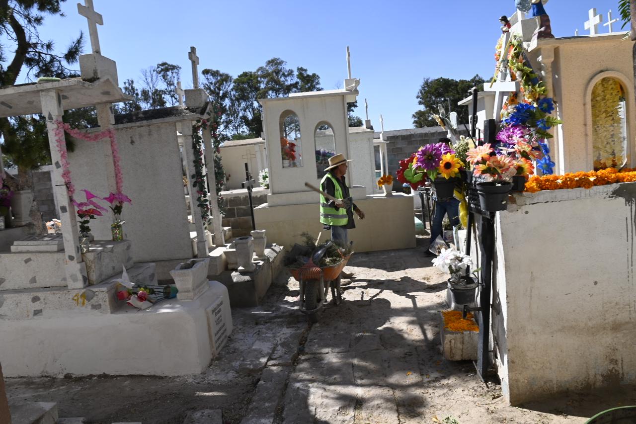 El Ayuntamiento de Soledad de Graciano Sánchez, a través de la Dirección de Servicios Municipales, realizó un operativo de limpieza y mantenimiento en los panteones municipales “Nuestra Señora del Refugio” I y “El Señor de la Misericordia” II, dejándolos en condiciones óptimas para recibir a más de 5 mil visitantes este fin de semana, 1º y 2 de noviembre, con motivo de la celebración del Día de Muertos; las labores incluyeron barrido general, poda de áreas verdes, retiro de escombros y limpieza de tumbas, garantizando espacios dignos y seguros para las familias.