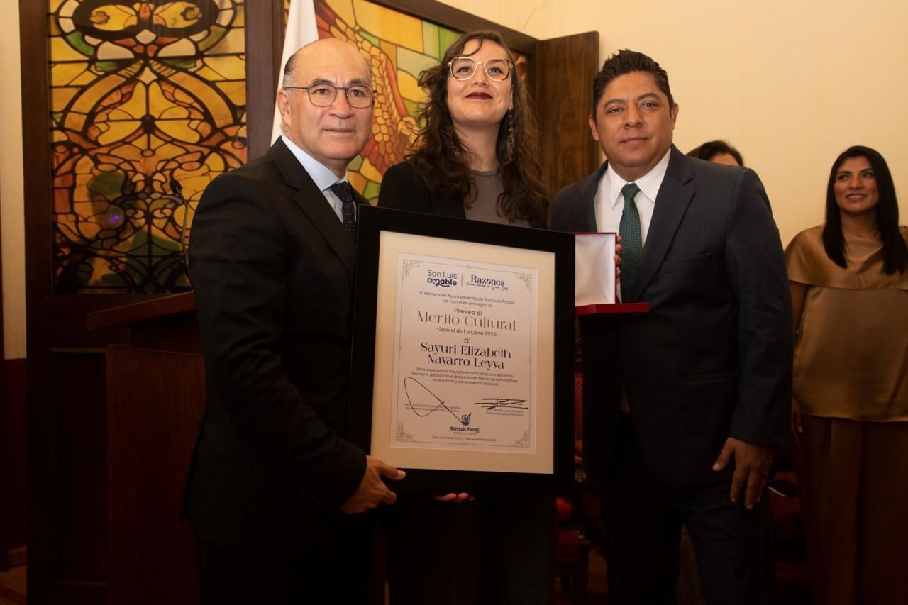 Ante el Mandatario Estatal como testigo de honor y representantes del Senado, Congreso Local y del Poder Judicial, el Alcalde Capitalino entregó la Presea al Mérito Cultural «Daniel de la Llera 2025», a Sayuli Elizabeth Navarro Leyva, a quien calificó como artista excepcional comprometida con la comunidad. A la par, Galindo Ceballos añadió que esta conmemoración se da cuenta al pueblo potosino que gracias al trabajo conjunto con el Gobierno del Estado y con diversos sectores, se ha tratado de estar a la altura de lo que exige la ciudadanía: «Continuaremos con la transformación de esta ciudad de cantera y de historia».