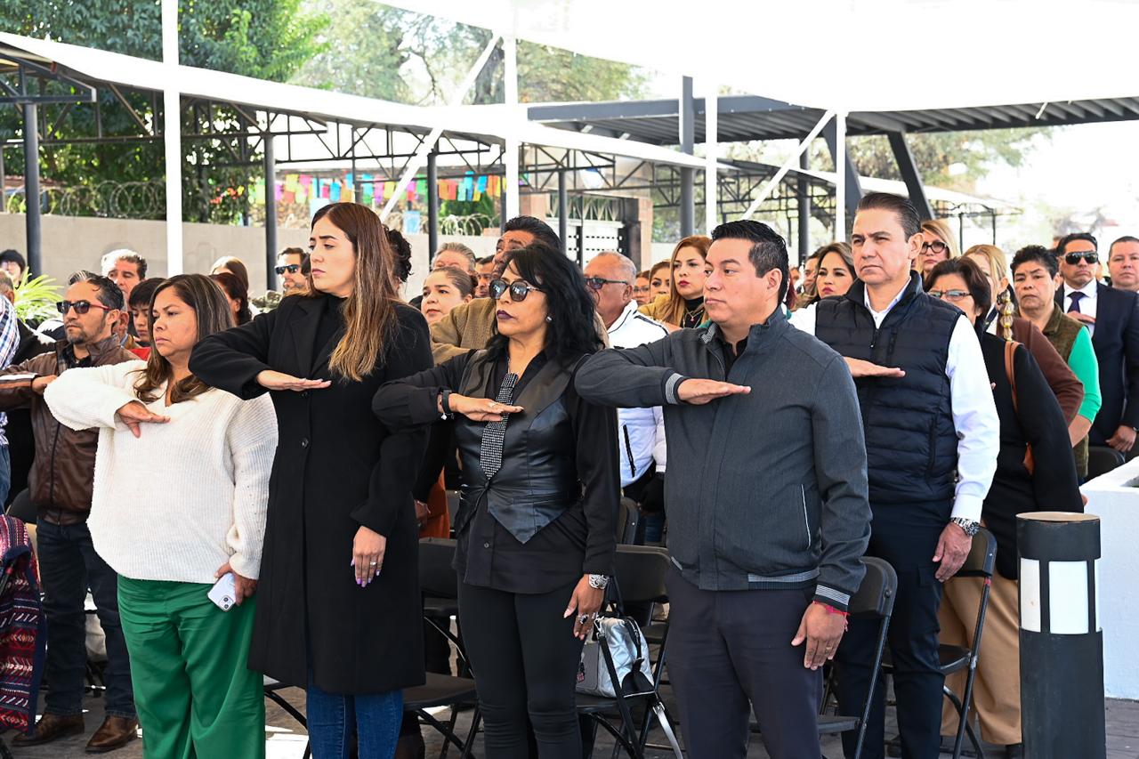 El evento fue encabezado por el Secretario General del Ayuntamiento, Benjamín Pérez Álvarez, en representación del presidente municipal, quien estuvo acompañado por el oficial mayor Luis Gerardo Ruiz Ibarra, la directora de Educación y Acción Cívica Municipal, Velia Guadalupe Castro Granja, y el director de la Guardia Civil Municipal, Aristarco Serna Piña, además de autoridades educativas, agrarias y militares, durante la ceremonia se rindió una guardia de honor, con el toque solemne de la banda de guerra, y se contó con la participación de alumnas y alumnos de la Secundaria Graciano Sánchez.