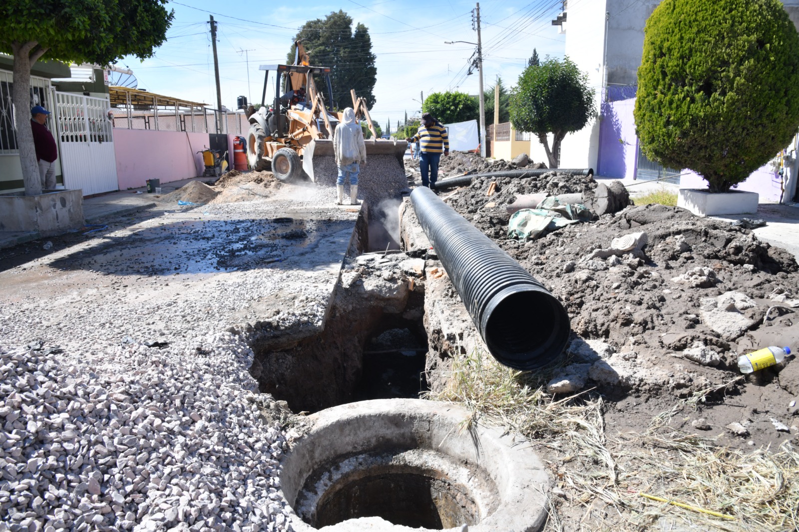 Los trabajos avanzan con equipos operativos desplegados en zonas donde la población había solicitado atención directa por afectaciones recurrentes; en la colonia San Felipe se realiza el reemplazo de 80 metros lineales de drenaje sobre la calle San Vicente, mientras que en la calle Guadalcázar se intervienen 30 metros de la línea principal. Estas acciones responden al compromiso institucional de escuchar las necesidades de las y los habitantes y solucionar de raíz los problemas que afectan su día a día.
