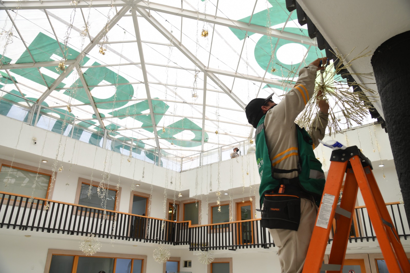 Personal de Alumbrado Público avanza en la decoración de la Presidencia Municipal y la Plaza principal, que pronto se encenderán junto a un imponente Árbol monumental pensado para convertirse en un símbolo de esperanza para niñas, niños, jóvenes y adultos, a su alrededor se preparan figuras, una villa navideña y detalles luminosos que buscan avivar la ilusión de la temporada y responder al deseo de la ciudadanía de contar con espacios llenos de armonía y alegría.