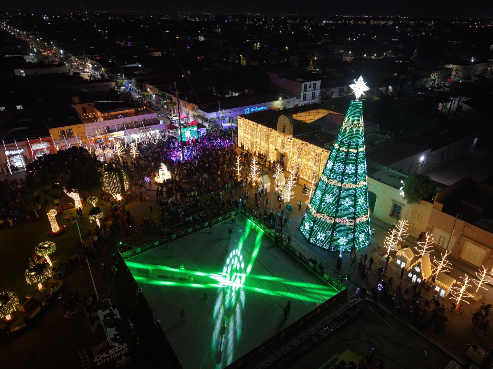 La magia de la Navidad iluminó esta noche el primer cuadro del municipio de Soledad de Graciano Sánchez, luego de que el Alcalde, Juan Manuel Navarro Muñiz realizó el encendido del Árbol monumental de Navidad y la inauguración de la Villa Navideña que rodea el jardín principal, una Pista de Hielo, así como del Nacimiento colocado en el patio del Ayuntamiento, dando inicio a las celebraciones navideñas 2025.
