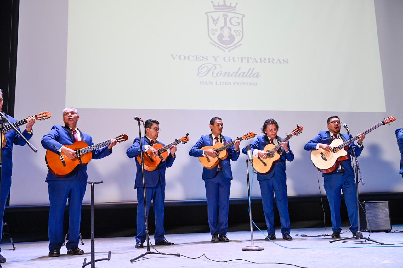 El programa abrió con la presentación de la agrupación Labios Rojos; posteriormente, la Rondalla de COBACH 01 ofreció un emotivo intermedio, y el cierre estuvo a cargo de “Voces y Guitarras de San Luis Potosí”, que conquistó al público con interpretaciones de clásicos de José Alfredo Jiménez como «Si nos dejan», «El Andariego» así como temas románticos como «Bésame mucho», entre otros, que fueron coreados por asistentes de todas las edades.