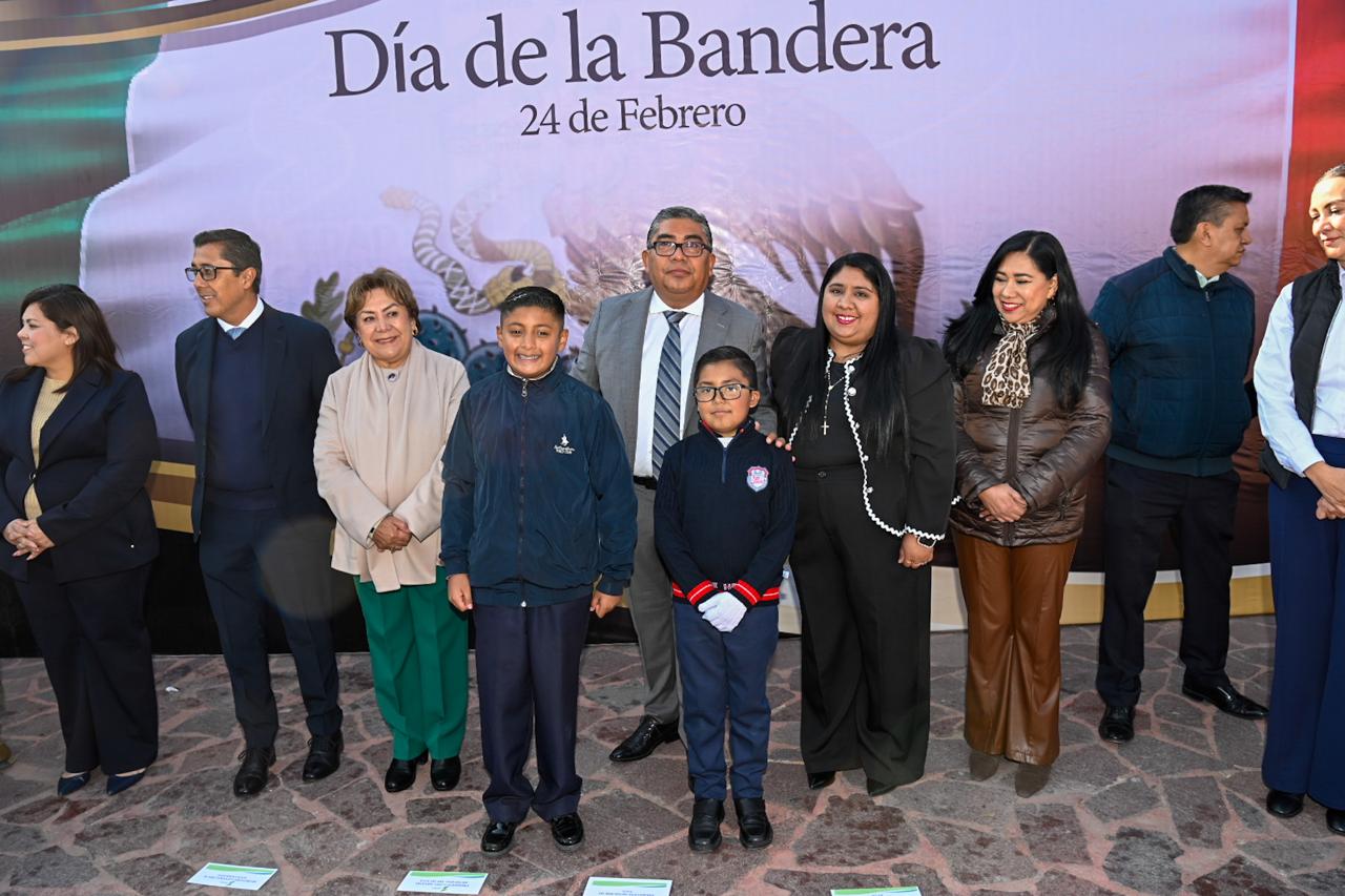 La ceremonia inició con Honores a la Bandera y continuó con la toma de protesta a cargo del Alcalde, quien, con bandera en mano, dirigió el tradicional juramento: “Al concederles el amparo de su sombra, espero que como buenos y leales mexicanos sabrán cumplir su promesa”. Posteriormente, Adrián Mateo Piña Reséndiz realizó el Juramento a la Bandera; se efectuó el saludo nominal con el canto a la Bandera de Julián Carrillo y se entonó el Himno Nacional Mexicano, con la participación de las y los alumnos de la Secundaria «21 de Marzo».