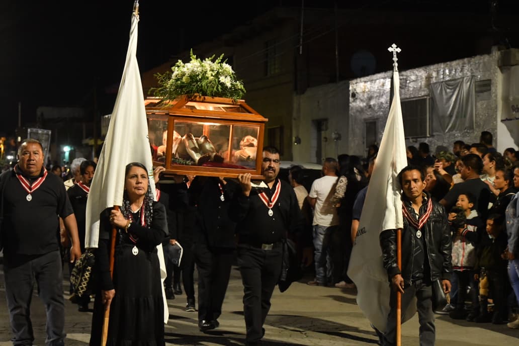Una de las cofradías, integrada por mujeres, portaron como costaleras o cargadoras, una de las imágenes de Cristo, donde las y los visitantes atestiguaron su devoción y el simbolismo de su fe en su marcha silenciosa que recordó la pasión y muerte de Jesús.