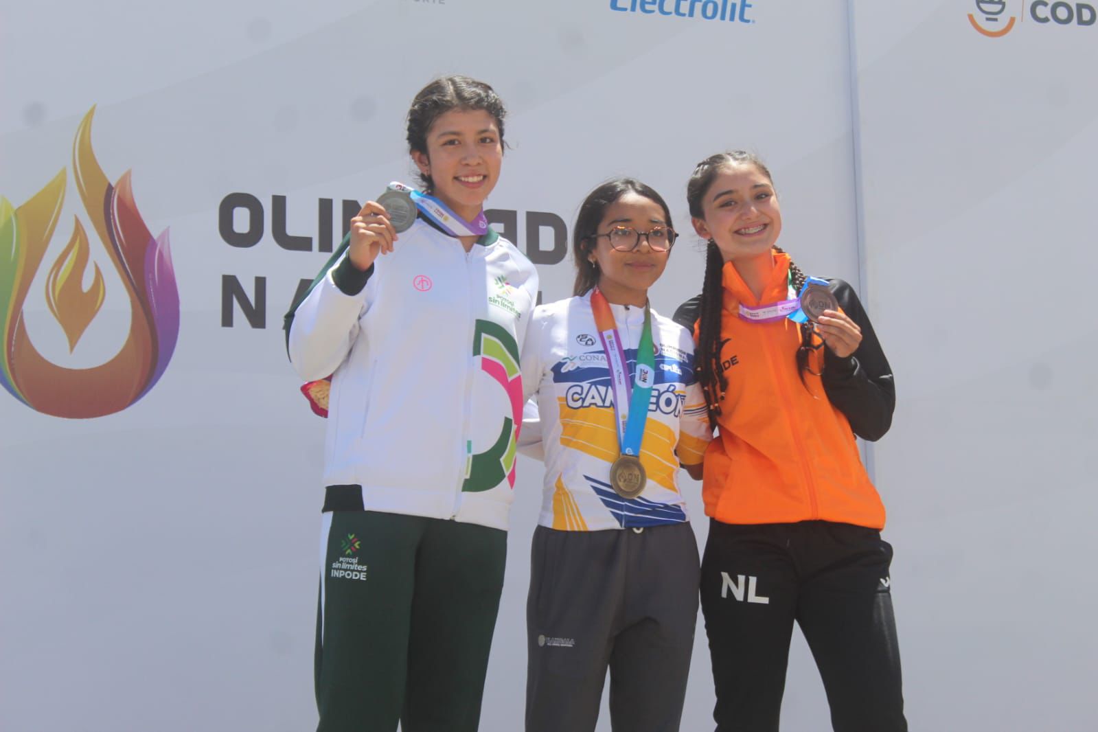 El bronce fue para el equipo femenil Cadete conformado por Jimena Méndez Sánchez, Georgina Guadalupe Posadas Gallegos y Margarita González Pérez, quienes firmaron una gran actuación en la prueba de 50 kilómetros. La actividad continúa este domingo con 9 representantes potosinos, muestra clara del cambio que se vive y se siente en el deporte Estatal.