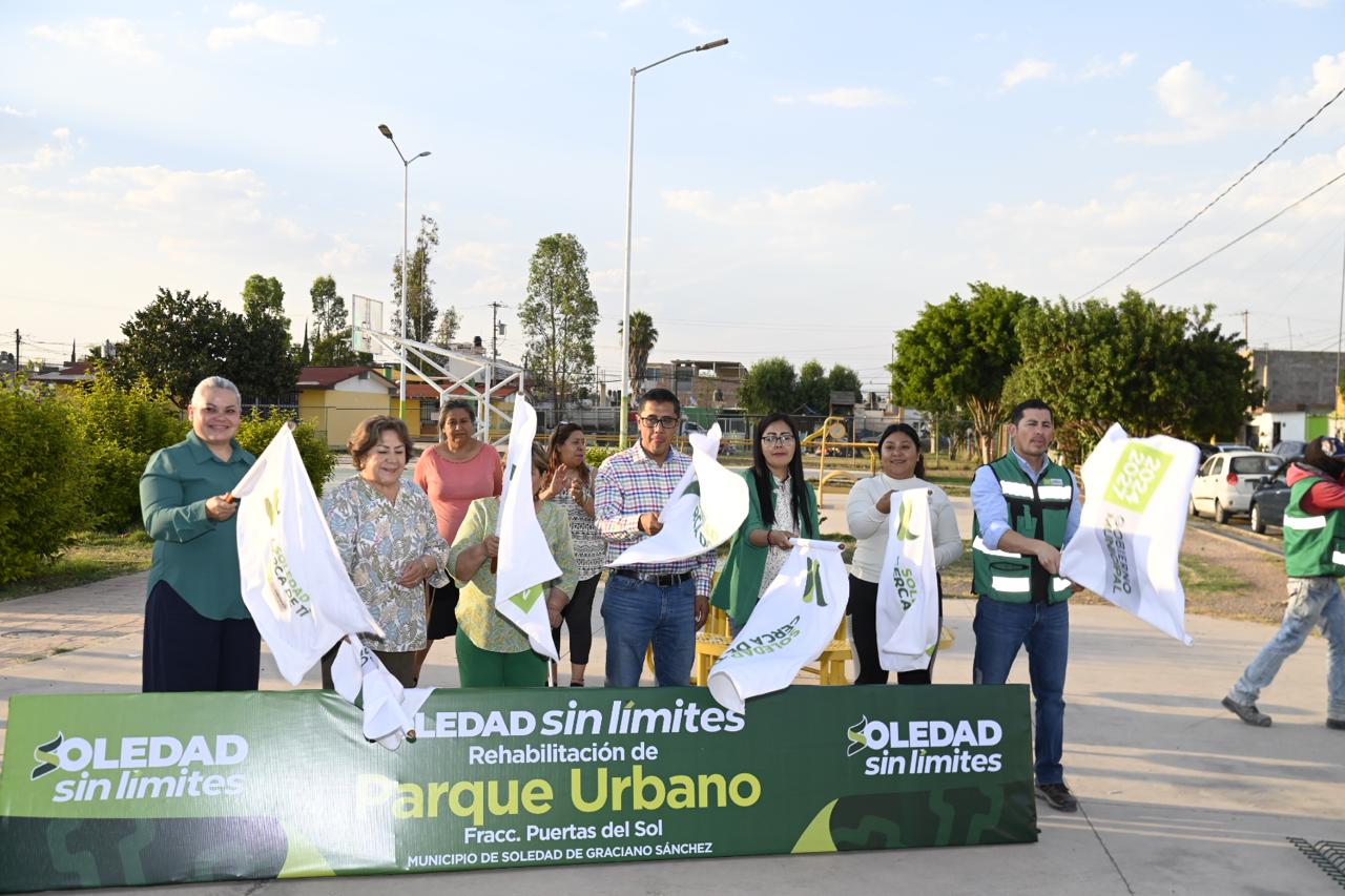 Juan Manuel Navarro Muñiz, Alcalde de Soledad de Graciano Sánchez, impulsa la generación de más espacios públicos multifuncionales para el disfrute de las familias y el esparcimiento positivo de jóvenes e infantes, y este lunes, instruyó el arranque de la reconstrucción del Parque Urbano en la colonia “Puertas del Sol”, al oriente del municipio, un proyecto que beneficiará a más de 4 mil 500 habitantes y que fortalece la cercanía del Gobierno municipal, al atender anhelos históricos para el mejoramiento urbano y la interacción de las personas de todas las edades.