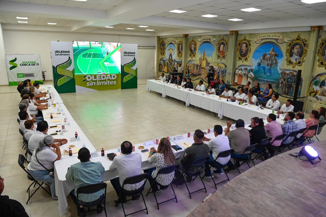 Juan Manuel Navarro Muñiz, Alcalde de Soledad de Graciano Sánchez, encabezó la sesión ordinaria del Consejo de Desarrollo Social Municipal, donde resaltó el avance de obras clave para el desarrollo urbano ordenada, estratégico y transformador para miles de familias locales y visitantes, generando mejores condiciones para la atracción turística, el desarrollo económico y el bienestar social; ante integrantes del Consejo, se informó el avance de importantes obras públicas y el comienzo de programas y proyectos que abonarán a la mejora de la calidad de vida de todas y todos los soledenses.
